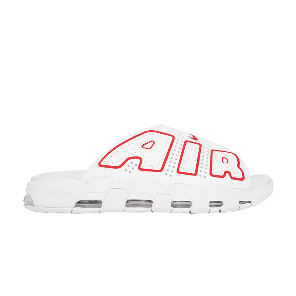 Introducing the Nike Air More Uptempo Slide, a stylish and comfortable sneaker designed by Nike. With its sleek white and university red colorway, these sneakers are perfect for women. Made with high-quality materials, they provide the ultimate comfort and support. Step up your sneaker game with the Nike Air More Uptempo Slide.