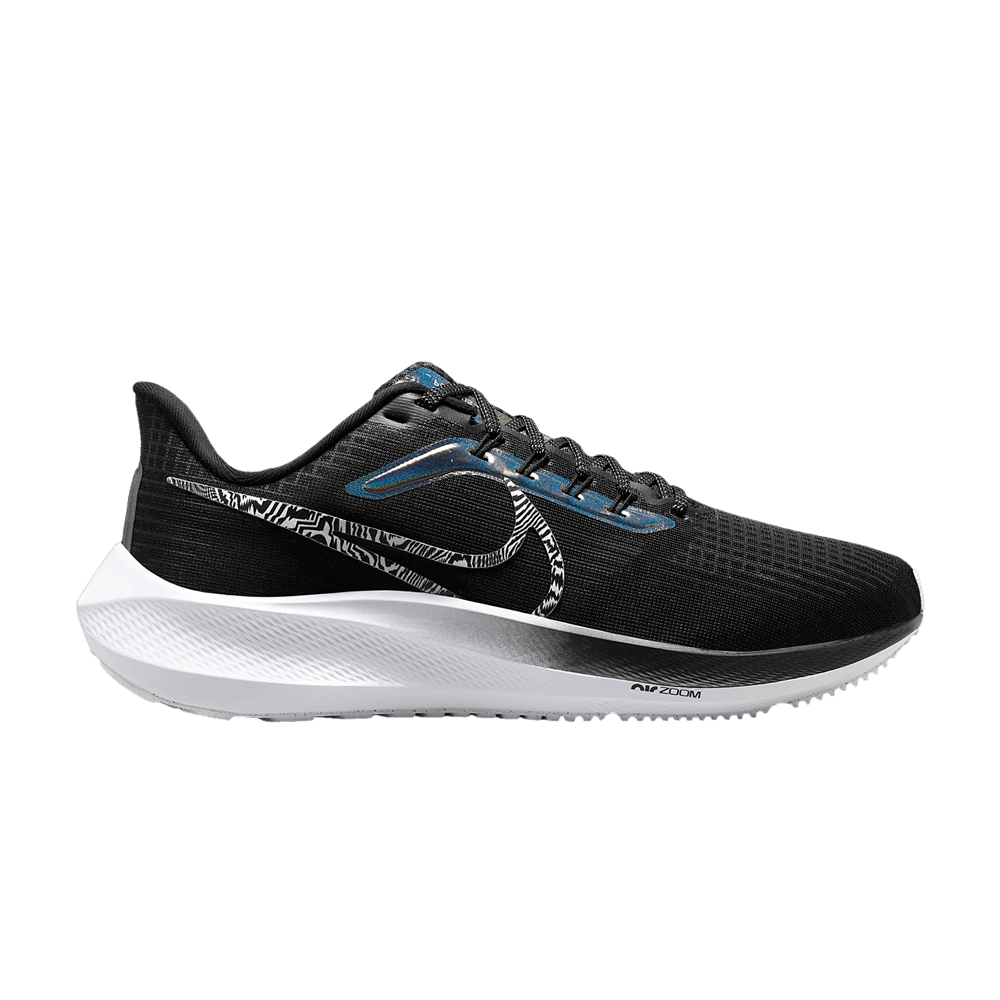 The Nike Air Zoom Pegasus 39 Black Zebra Iridescent (WMNS) is a trendy sneaker designed by Nike. This stylish shoe features a black and white zebra print, complemented by iridescent accents. With its Air Zoom technology, it provides responsive cushioning for all-day comfort. Perfect for both casual and athletic wear, these sneakers are a must-have addition to any shoe collection.