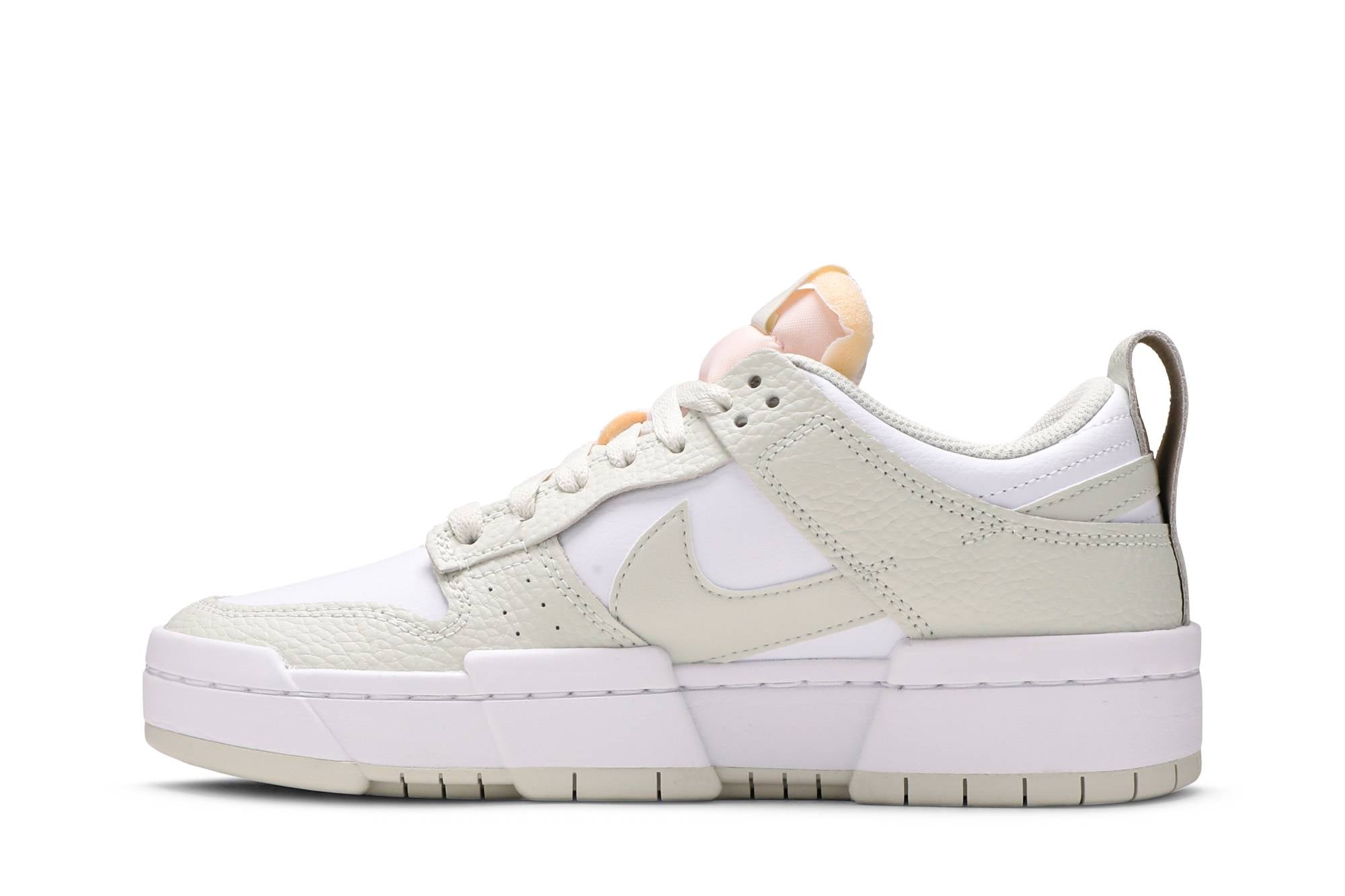 Step into style with the Women’s Nike Dunk Low Disrupt ‘Sea Glass’ DM3063-100. Featuring a unique blend of beige and pastel hues, this sneaker offers a fresh twist on the classic Dunk silhouette. Crafted with premium leather and airy mesh, it ensures both durability and breathability. The exaggerated midsole and wavy overlays add contemporary flair, while the padded collar and cushioned insole provide all-day comfort. Perfect for elevating any casual outfit, the ‘Sea Glass’ Dunk