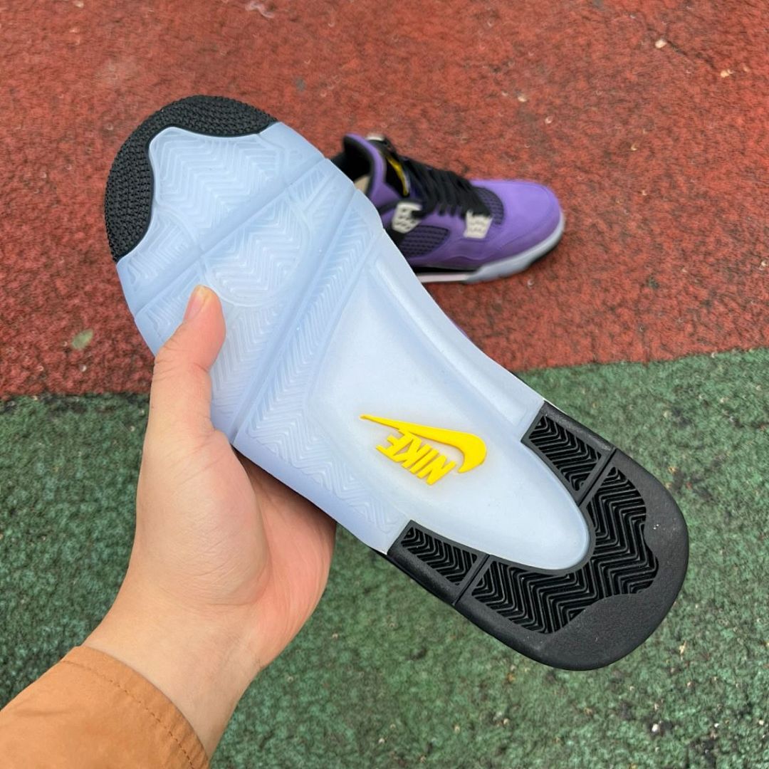 - Iconic Design Reimagined: The timeless Air Jordan 4 silhouette returns with a captivating “Canyon Purple” theme, offering a fresh take on a beloved classic.