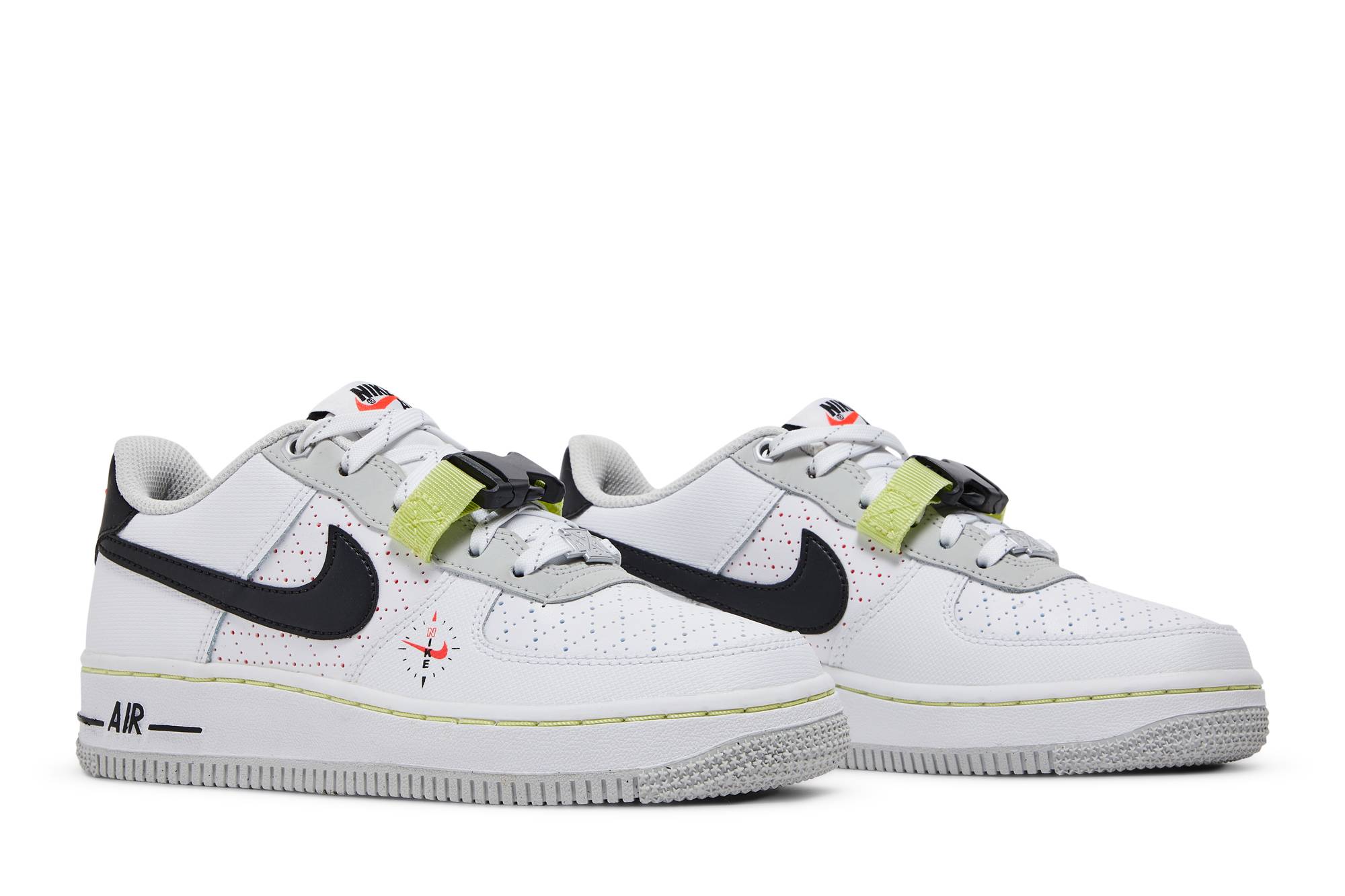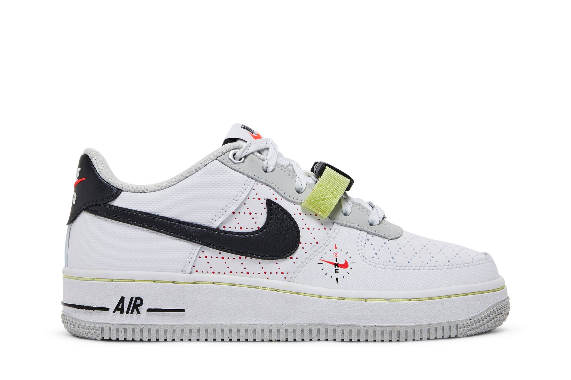 The (Youth) Nike Air Force 1 LV8 Swoosh Compass DC2532-100 sneakers by Nike offer a trendy and stylish look for the younger generation. Featuring the iconic Swoosh logo and a unique compass design, these sneakers are a must-have for those seeking both fashion and comfort.