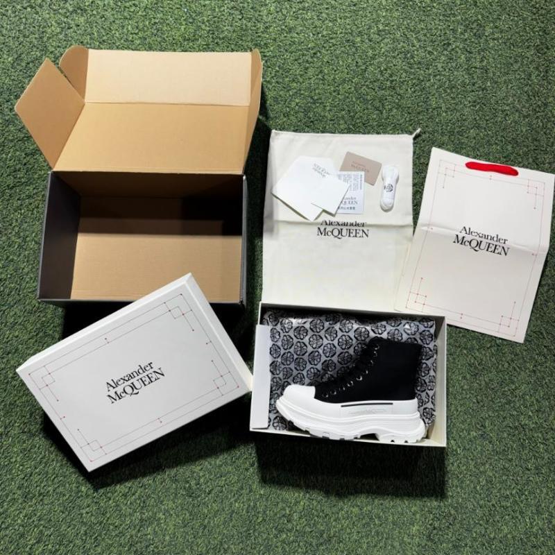 Alexander McQueen Tread Slick Boot Black Canvas White Sole