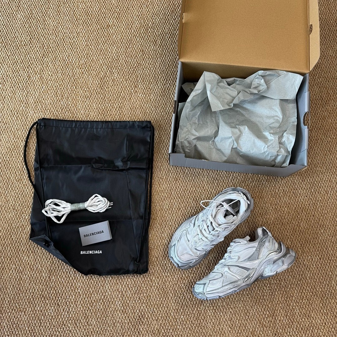 Balenciaga Runner Sneaker White Silver Distressed 677403 W3CP2
