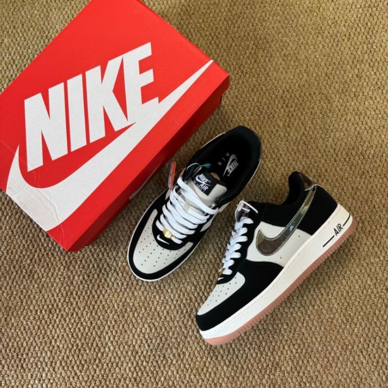 Nike Air Force 1 Low Black Sail Metallic Bronze Camo Heel Pink Gum Sole